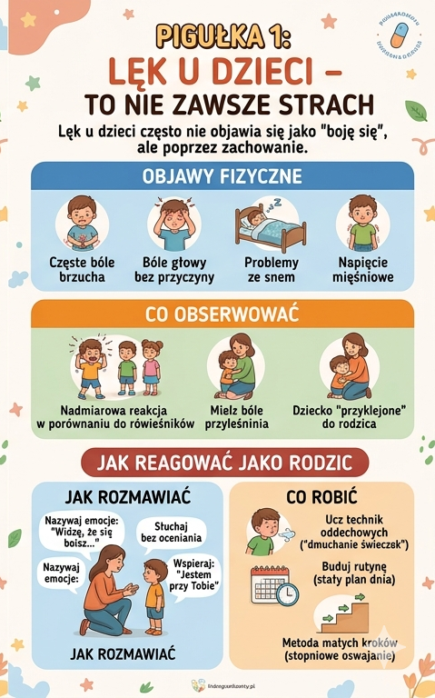 Lęk u dzieci rzadko jest wyrażany wprost. Zamiast mówić o emocjach, dziecko może komunikować swój dyskomfort poprzez ciało lub zachowanie. Warto zwrócić uwagę na sygnały, które mogą świadczyć o tym, że dziecko przeżywa trudne emocje: