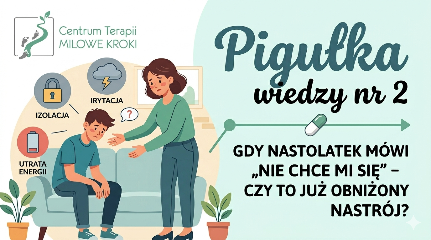 Rodzice często słyszą od swoich dzieci: „nie chce mi się”, „nuda”, albo „zostaw mnie w spokoju”. Choć takie komunikaty bywają wpisane w dorastanie, jako rodzice musimy być czujni. W poprzedniej pigułce omawialiśmy fundamenty budowania relacji, które pozwalają dostrzec zmiany – dziś skupimy się na tym, kiedy obniżony nastrój u nastolatka przestaje być zwykłym „lenistwem”, a staje się sygnałem alarmowym.
